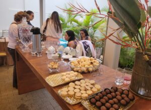 O bazar aconteceu em uma tarde especialmente agradável, apesar da chuva que caiu, e foi marcado por um clima descontraído e acolhedor. A trilha sonora ficou por conta da DJ Adriana e do saxofonista Leo, que costumam abrilhantar os eventos da clínica e doaram seu talento ao evento. Para completar a experiência, as convidadas foram recebidas com um saboroso café, com pão de queijo quentinho, biscoitos finos e bombons, sinalizando o cuidado nos detalhes e o clima de confraternização.