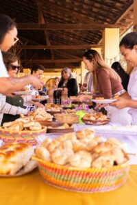 A boa música de Jota Pereira alegrou ainda mais a tarde.  No cardápio, salgados, bolos diversos, tortas doces e salgadas, bombons, biscoitos caseiros, queijo, pão de queijo, doce de leite feito na hora, assim como o cafezinho coado, chás, sucos e ponche de frutas. Cada gesto de apoio, cada hora doada e cada contribuição fizeram a diferença: com a renda arrecadada, será feita a aquisição de equipamentos para a cozinha do Laiite.