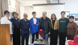 A presidente do Rotary-Cachoeira, Eliana Miranda, e a comissão de intercâmbio: Lea Alves, Marcelo Pereira, Louis, Pedro Costa e a esposa Márcia, João Lucas e Vanina Dias, rotariana e tradutora