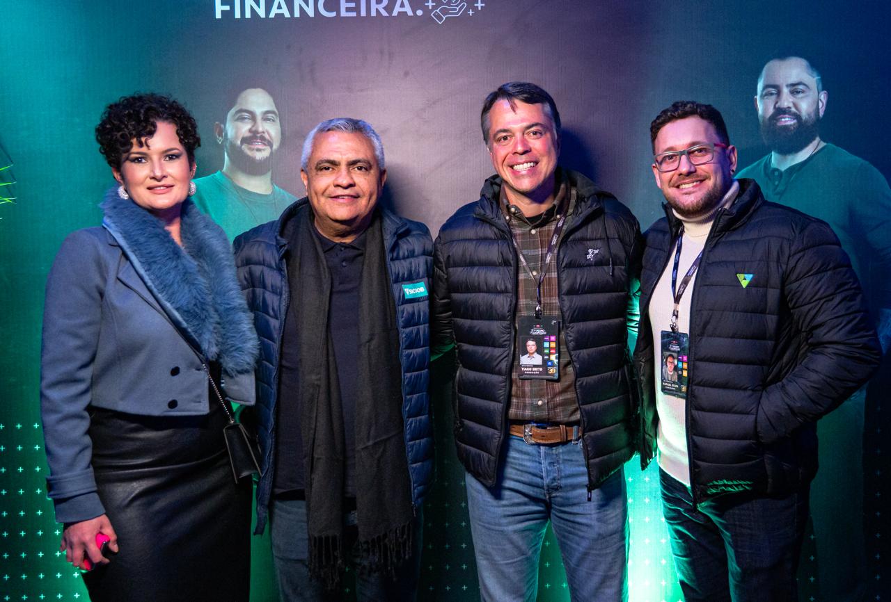 Carina Guimarães (diretora de riscos), Elson (diretor de negócios da central Crediminas), Tiago Brito (idealizador e organizador do PLRS), e Rafael Luiz (diretor de negócios do Sicoob Credipel)